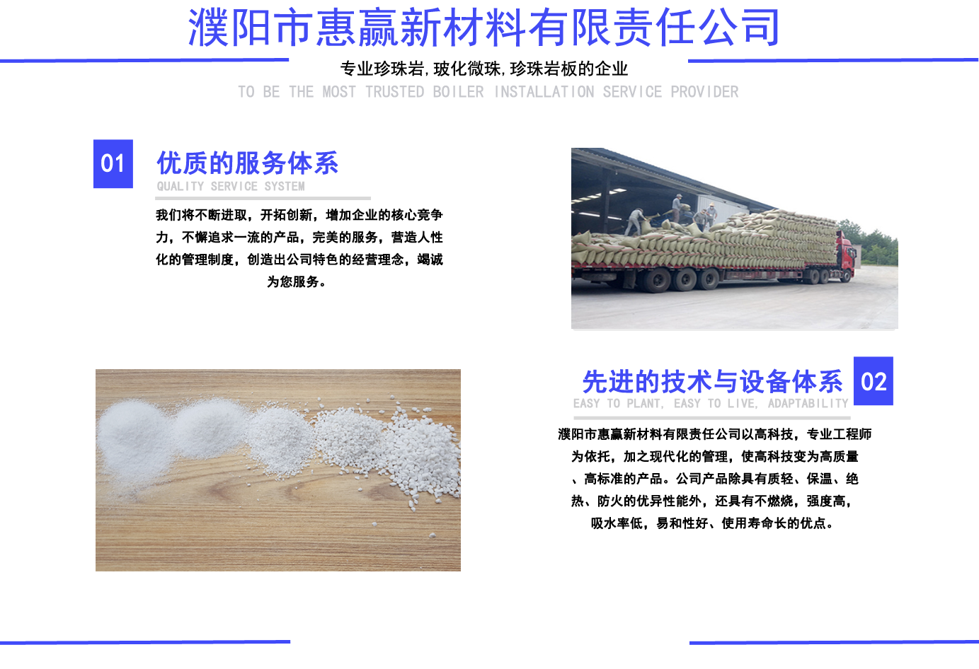 珍珠巖,?;⒅??;⒅楸厣皾{, 珍珠巖板,憎水珍珠巖,憎水型珍珠巖, 憎水型膨脹珍珠巖, 膨脹珍珠巖,珠光砂-濮陽市惠贏新材料有限責任公司 公司簡介/ ABOUT